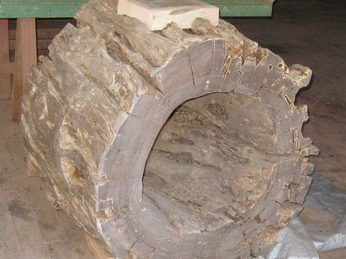 The log I used is Puriri which has probably been lying on the ground for nearly one hundred years. The Tutukaka coast was highly regarded for this timber which was milled for tram track lines in Auckland at the turn of the century. It was said that there was a millable tree every chain (20 meters) along the coast. Judging by the old stumps left around the farm these would have been some impressive trees.